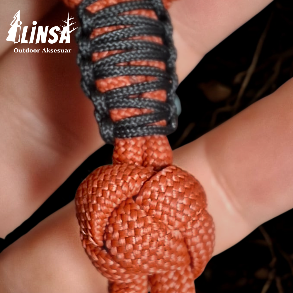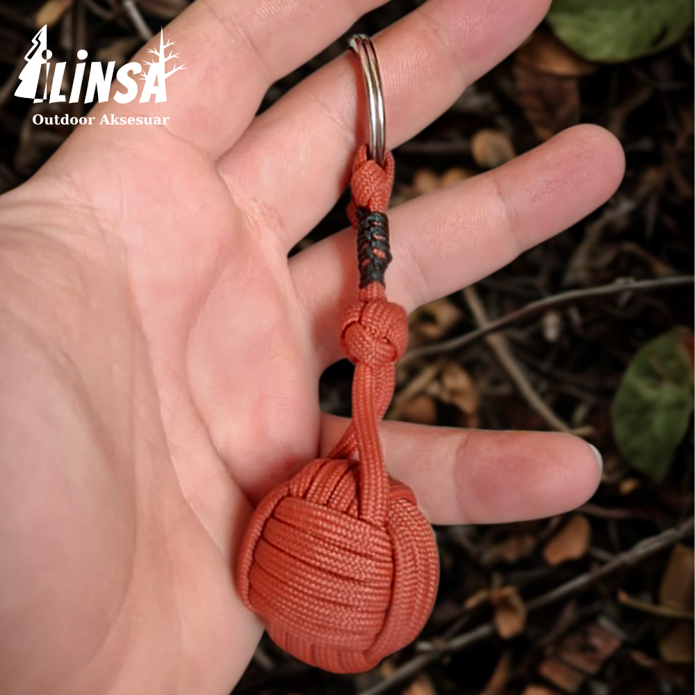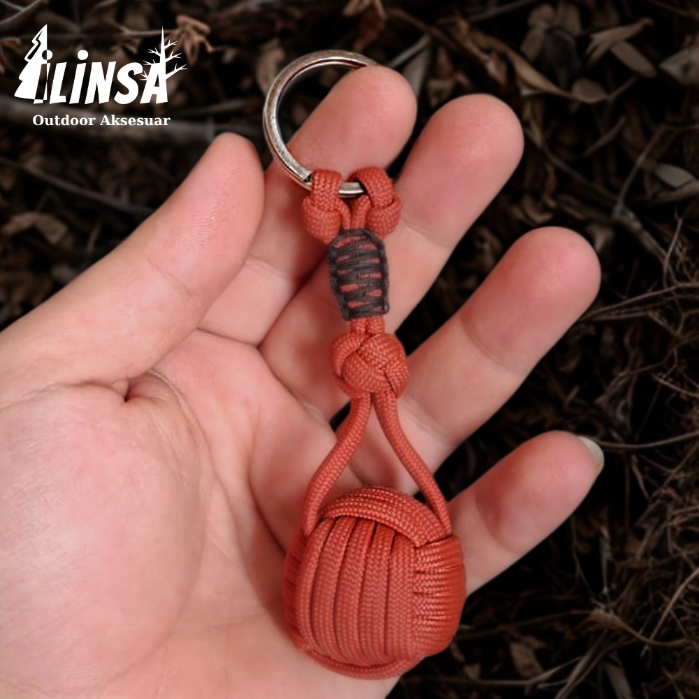 Bu özel tasarım anahtarlık, maun ağacından yapılmış ahşap top, pirinç detaylı metal aksesuar ve dayanıklı çelik anahtarlık halkasıyla bir araya geliyor. Tamamen el işçiliğiyle hazırlanan paracord örgüsü, uzun ömürlü kullanım ve benzersiz bir görünüm sunar.